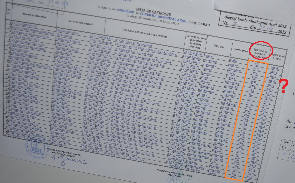 De ce ar candida în primul rând în Arad? Unul din PDLiștii de frunte prezenți la evenimentul de duminică spune pentru presa locală că proiectul ARD este în fapt, o continuare a proiectului Mișcării Creștin-Liberale. Iar dacă acest lucru este adevărat, înseamnă că atât ”partenerii” PDL-ului, adică PNȚCD și Forța Civică nu vor avea candidați. Pentru că la nivel local, cu toate că pe foaie Partidul Ecologist Român era aliatul PDL, candidați au fost numai din partea partidului prezidențial (vezi foto dreapta). În decembrie, dacă MCL este într-adevăr strămoșul ARD, vom vedea pedeliști vechi în straie noi. Deși tind să cred că vor exista totuși candidați din afară: 1 (MRU) sau 2 (țărăniști în Timiș); la nivel național, reprezentând un procent de 0,6 din totalul parlamentarilor.